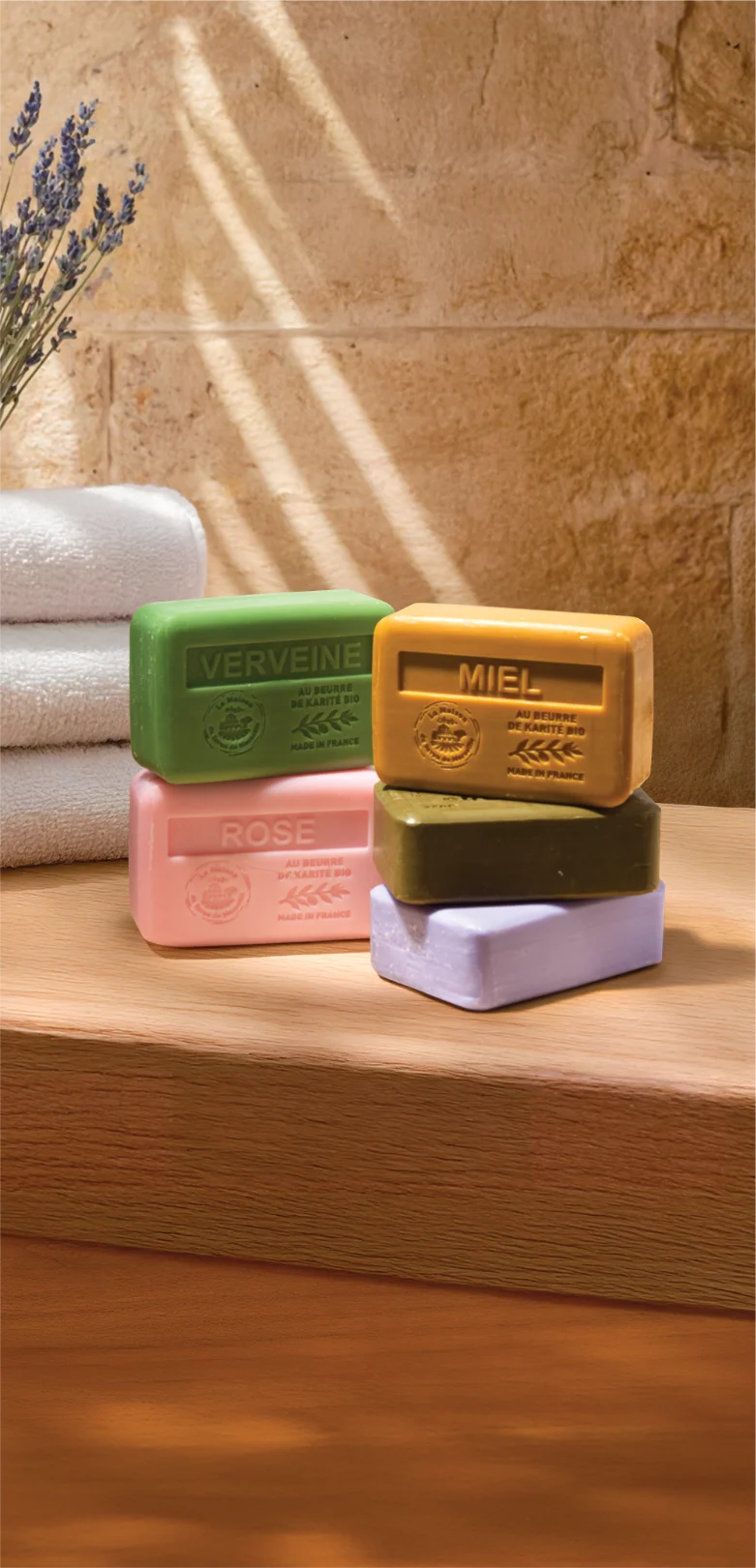 Chez La Maison du Savon de Marseille, chaque produit est une ode à la tradition et au savoir-faire provençal. Fabriqués en France, nos savons et cosmétiques sont enrichis en huiles végétales et beurres de karité bio pour offrir des soins respectueux de la peau et de l'environnement