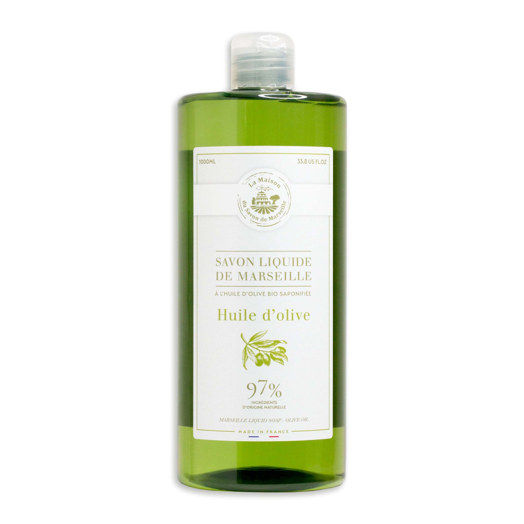 Unsere Nachfüllflasche mit Flüssigseife aus Marseille wird im Herzen der Provence nach einer althergebrachten Methode hergestellt, bei der eine Mischung aus Pflanzenöl (Kopra, Olive, Argan...) und Pottasche verwendet wird.