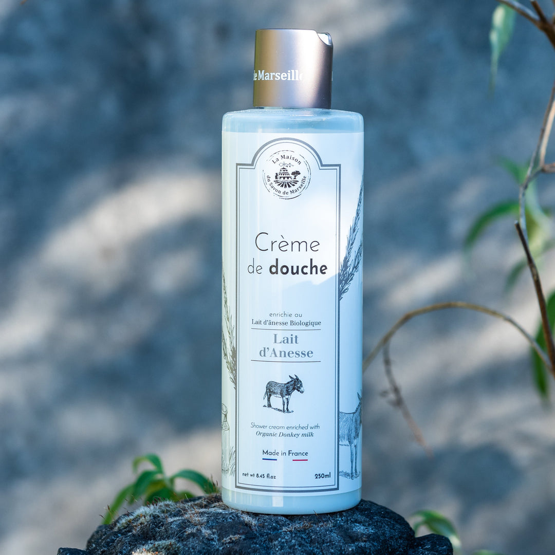 Nutzen Sie die Vorteile der Körpercreme Eselsmilch für eine genährte und weiche Haut schon beim Duschen! Diese Duschcreme ist mit Bio-Eselmilch, Karitébutter und pflanzlichem Glycerin angereichert. Sie reinigt sanft und bewahrt gleichzeitig die Feuchtigkeit der Haut. Hergestellt in der Provence aus 95 % natürlichen Inhaltsstoffen.