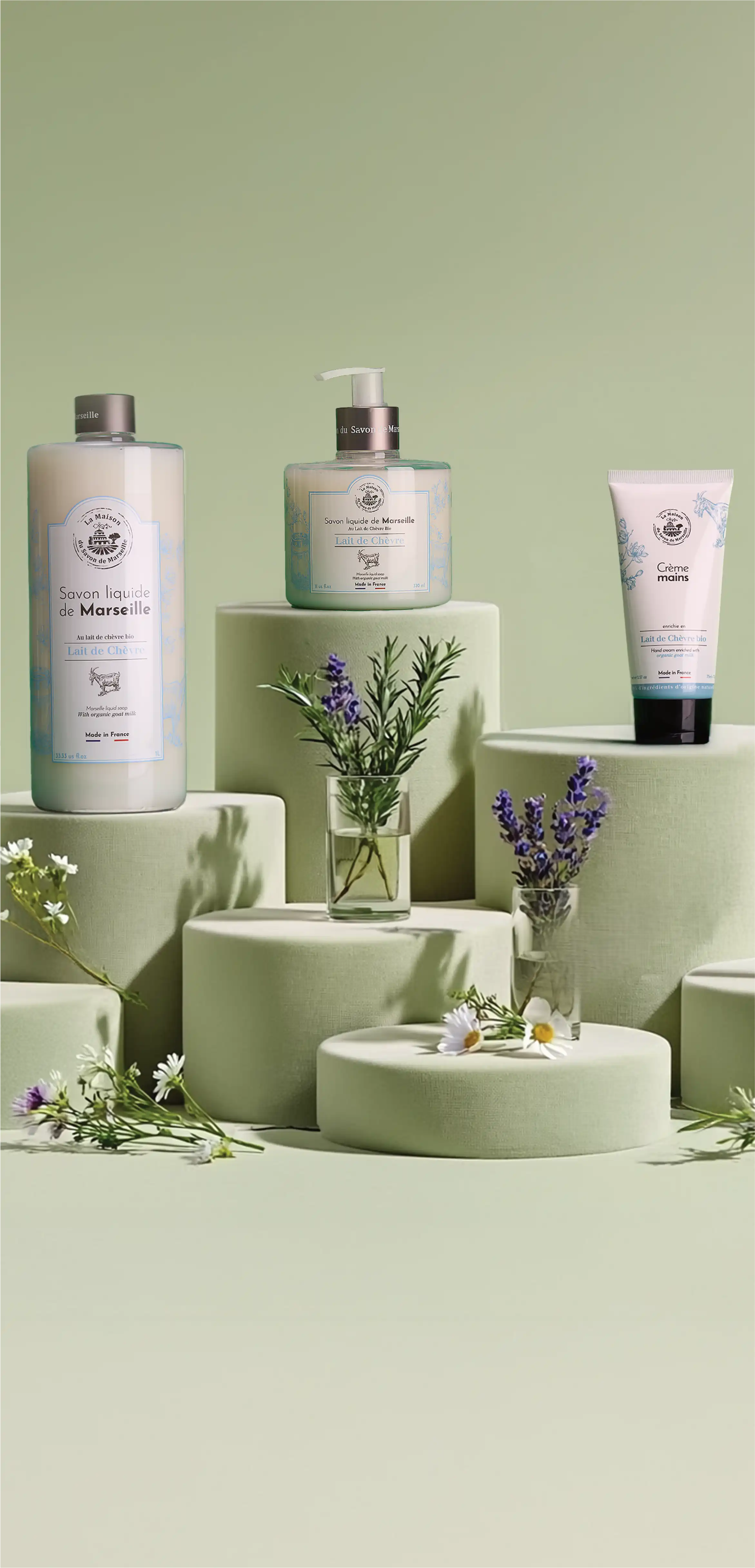 At La Maison du Savon de Marseille, every product is an ode to Provencal tradition and know-how. Made in France, our soaps and cosmetics are enriched with organic vegetable oils and shea butters to offer skin care that respects both the skin and the environment.